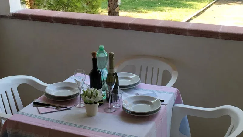 Pine grove view, approximately 27/36 sqm, studio apartment for 2 + 2 (children) with double bed and bunk bed, covered terrace, located on the raised ground floor.
